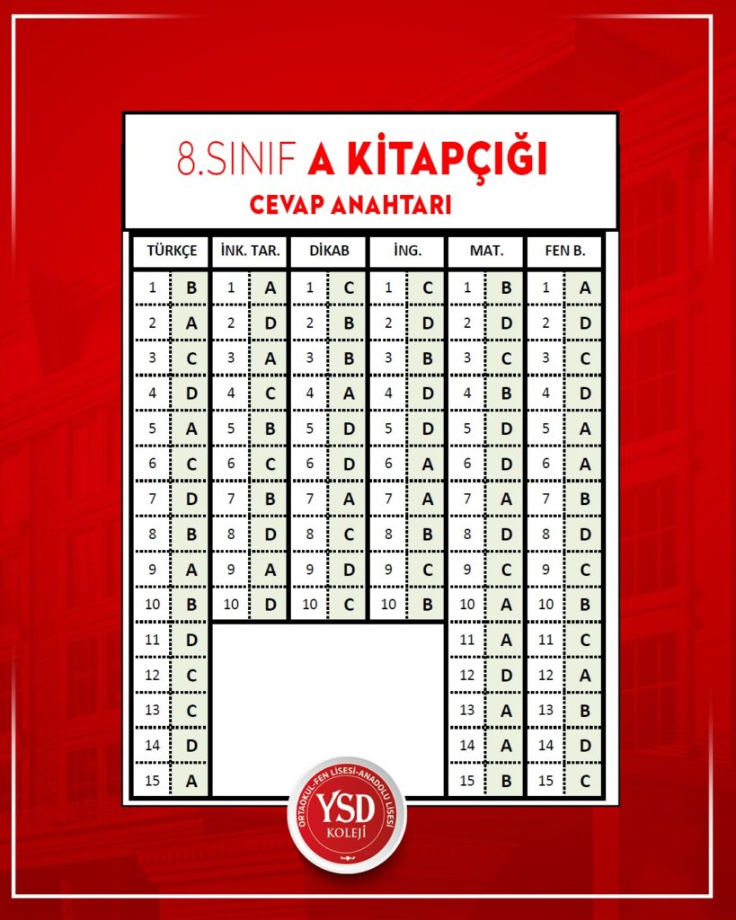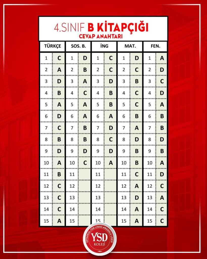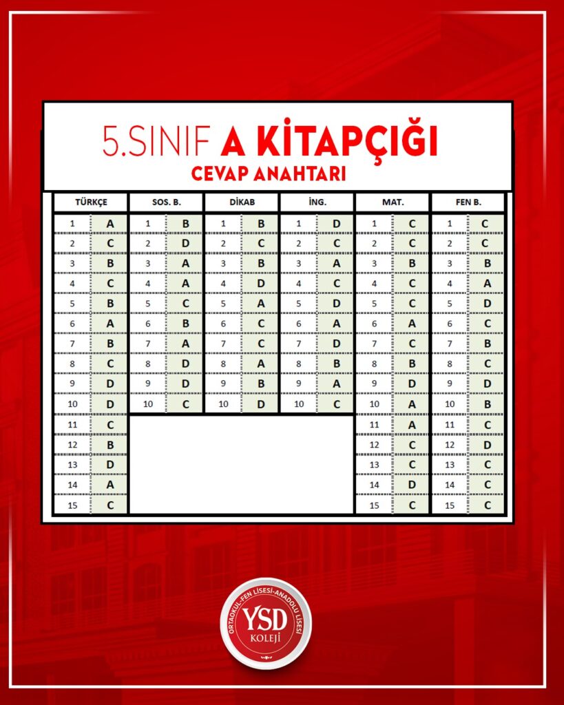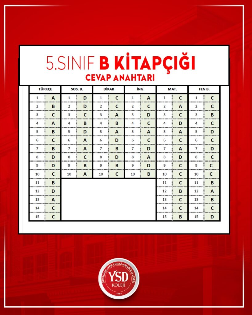 YSD KOLEJİ BURSLULUK VE KABUL SINAVI CEVAP ANAHTARI Bilge Kunduz – BEBRAS Enformatik ve Bilgi İşlemsel Düşünme Etkinliğinde Öğrencilerimiz FİNALDELER!
